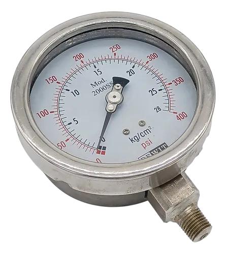 Manometro Industrial Inferior Módelo 2000SS/Caratula 100mm Seco, Caja Acero Inoxidable - Configurable Rangos de Presión